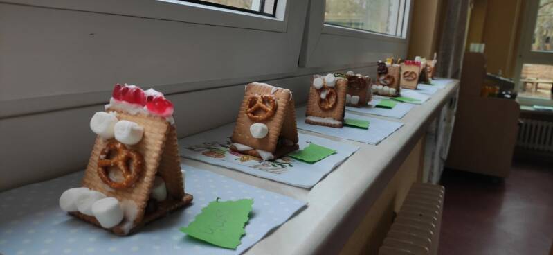 Aber dafür haben wir unsere leckeren Hexenhäuschen gebaut. Die sind so schön geworden, dass wir zum Dank natürlich auch eins vor Tuulis Tür gestellt haben! Hoffentlich passt es in Tuulis kleine Wohnung...