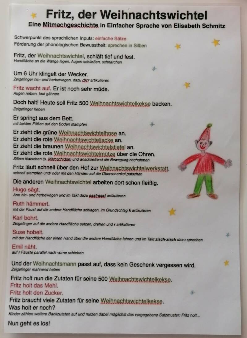 Frau Teumner hat uns noch eine Geschichte zu Mitmachen vorgelesen, aber wir waren uns ganz schnell einig, dass der Wichtel Matz heißt und nicht Fritz!!!